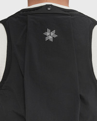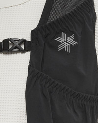 "The Goldwin Star Trail Pack is a running vest co-developed with Goldwin athlete and world-class trail runner Dylan Bowman with an emphasis on stretch, lightness and storage. - The material on the back has both elasticity and a superior fit that stretches well with the things in it, but doesn't wobble much while running##- Mesh material on the back to maintain comfort while sweating##- Designed with a slightly higher center of gravity than regular trail backpacks, which makes the weight less noticeable - The chest strap has a buckle for easy opening and closing - The design provides easy access to stored items while moving - The main compartment has a half pocket which is useful for storing waterproof outerwear etc. An additional security pocket in the main compartment, pockets on both sides for storing small items and a pocket on the front for storing gel packs etc. " Article Number: GM95181-BK Gender: Men Color: BLACK Material: 68% Nylon, 32% Spandex/elastane