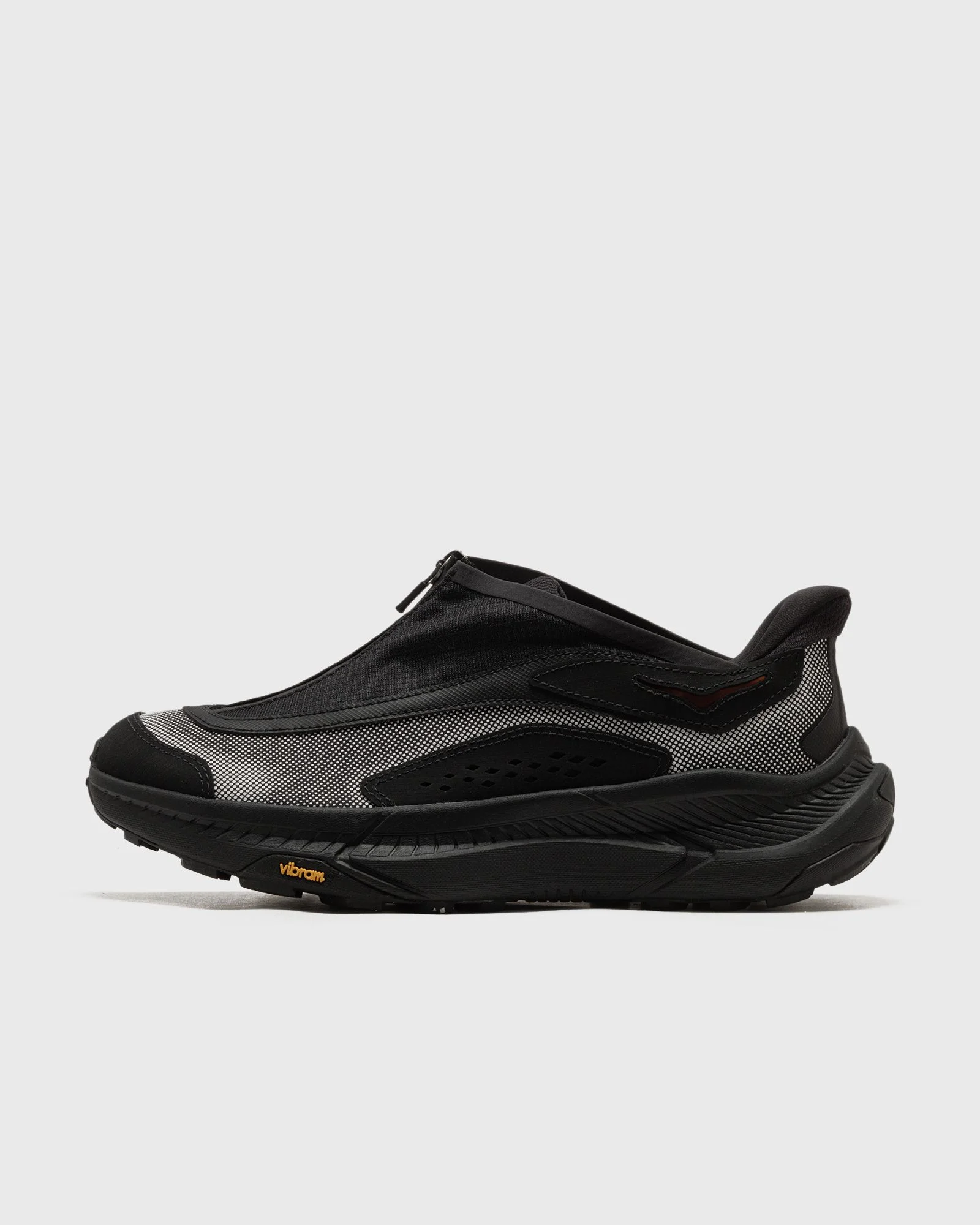 The HOKA One One Project Transport gets added visibility this season as part of the Stealth/Tech collection and is updated with streetwear-inspired elements. These include a 3D print upper with a grid pattern and a tactile dot pattern. Its reflective details provide additional visibility and a futuristic look. - Upper with grid structure and 3D print - Haptic dot pattern - Zipper with ripstop coating - Reflective details - Speckled outsole Article number: 1168953-BWHT Gender: men Color: BLACK / WHITE Material: 30% Rubber, 70% Synthetic/Textile