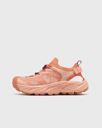The HOKA One One Hopara 2 tackles mud, dirt and rocks with absolute ease. The reimagined version is made from eco-conscious materials and features a 30% sugarcane sockliner and midsole, a 100% recycled knit upper and 100% recycled Cordura mesh overlays to drain water and keep rocks off your feet. Laces with toggles and an adjustable heel strap guarantee a customized fit. Thanks to quick-drying, water-repellent materials, you can simply leave the shoes on the next time you cross a stream. - Upper made from 100% recycled knit with water-repellent treatment - Cordura mesh overlays made from 100% recycled material - Adjustable heel strap - Quick-lace laces with toggle - Outsole made from non-slip rubber - Ripstop overlay - Durable rubber toe cap - EVA top sole made from 30% sugar cane - EVA midsole made from 30% sugar cane - Vegan Article Number: 1147670-DLY Gender: Women Color: DRY CLAY / FELDSPAR Material: 100% Synthetic/Textile