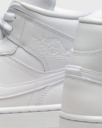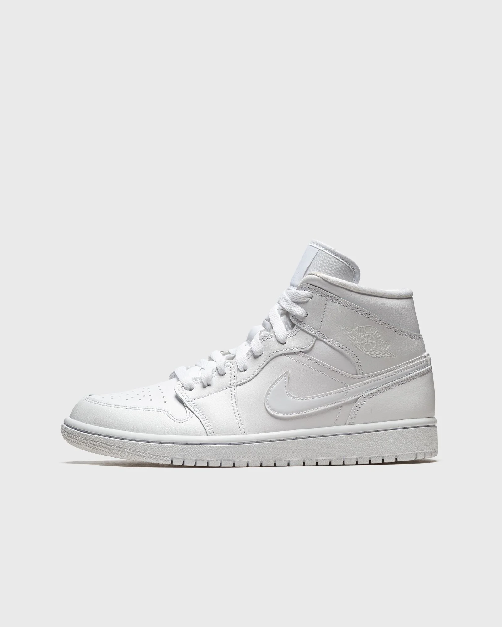 The Air Jordan 1 Mid combines comprehensive court style and premium comfort for a legendary look. The Air-Sole element provides cushioning on hardwood and the padded collar provides a supportive feel. - Premium leather and synthetic upper for durability, comfort and support - Air-Sole element in the heel provides signature cushioning - Excellent cushioning and traction on a variety of surfaces with the rubber outsole Article number: DV0991-111 Gender: women Color: WHITE/WHITE-WHITE Material: Full: 100% Leather/Textil
