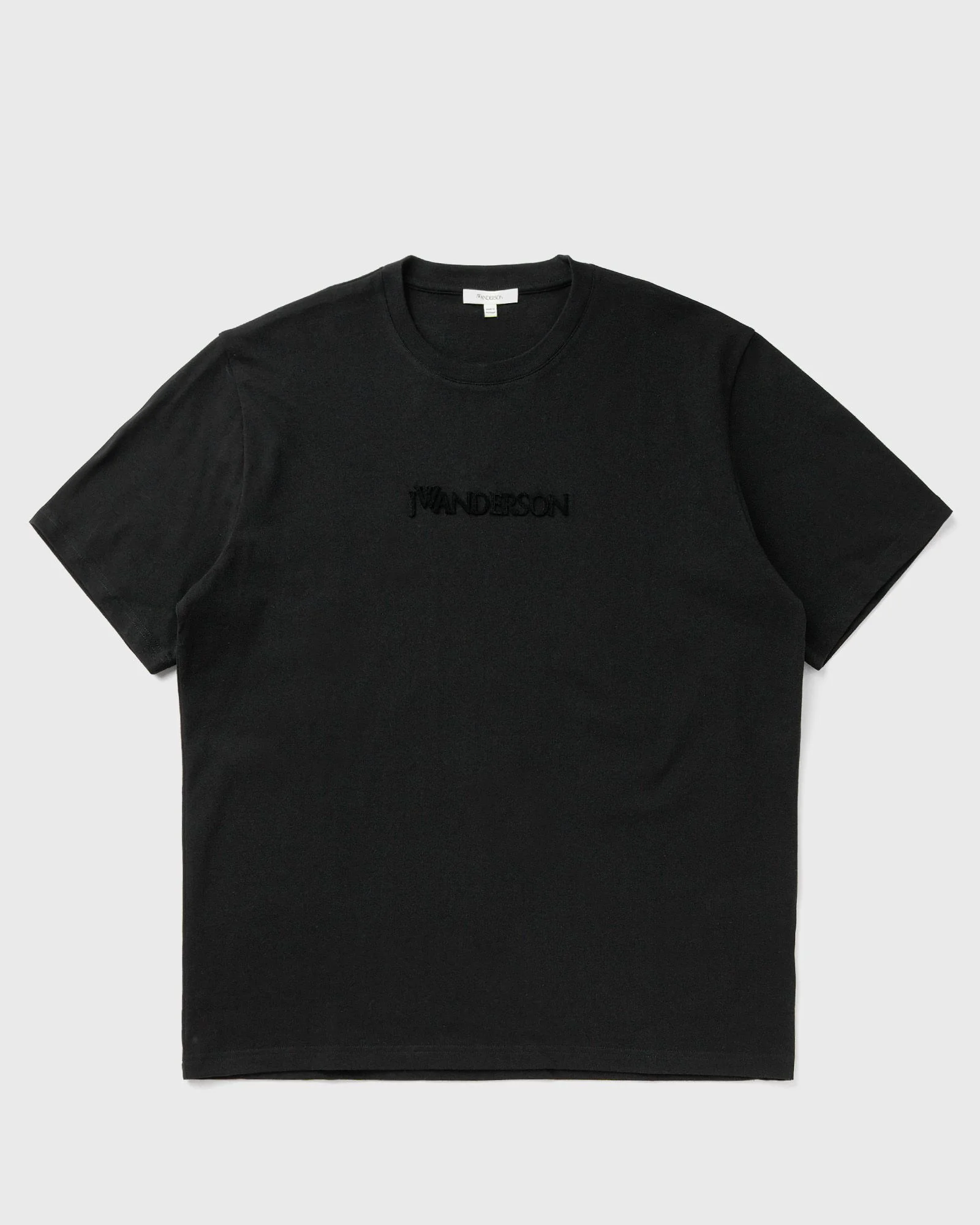 The JW Anderson Logo Embroidery T-shirt is a minimalist tee made from 100% cotton. It features a classic cut, crew neck and subtle tonal 3D logo embroidery on the chest. - Short sleeve tee with tonal 3D logo embroidery on the chest - Crew neck - Classic fit Article Number: JT0258-PG1510-999 Gender: Men Color: BLACK Material: 100% Cotton
