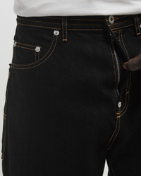 These cargo fit jeans by Kenzo are made from particularly high-quality Japanese denim in a relaxed silhouette. The trousers feature two side pockets, a coin pocket and two large back pockets. Contrasting seams provide an accentuating finish. - Button and zipper closure - Two side pockets - One coin pocket - Two back pockets - Belt loops Article Number: FF55DP4206C1.BM Gender: Men Color: RINSE BLACK DEN Material: 99% Cotton, 1% Spandex/elastane