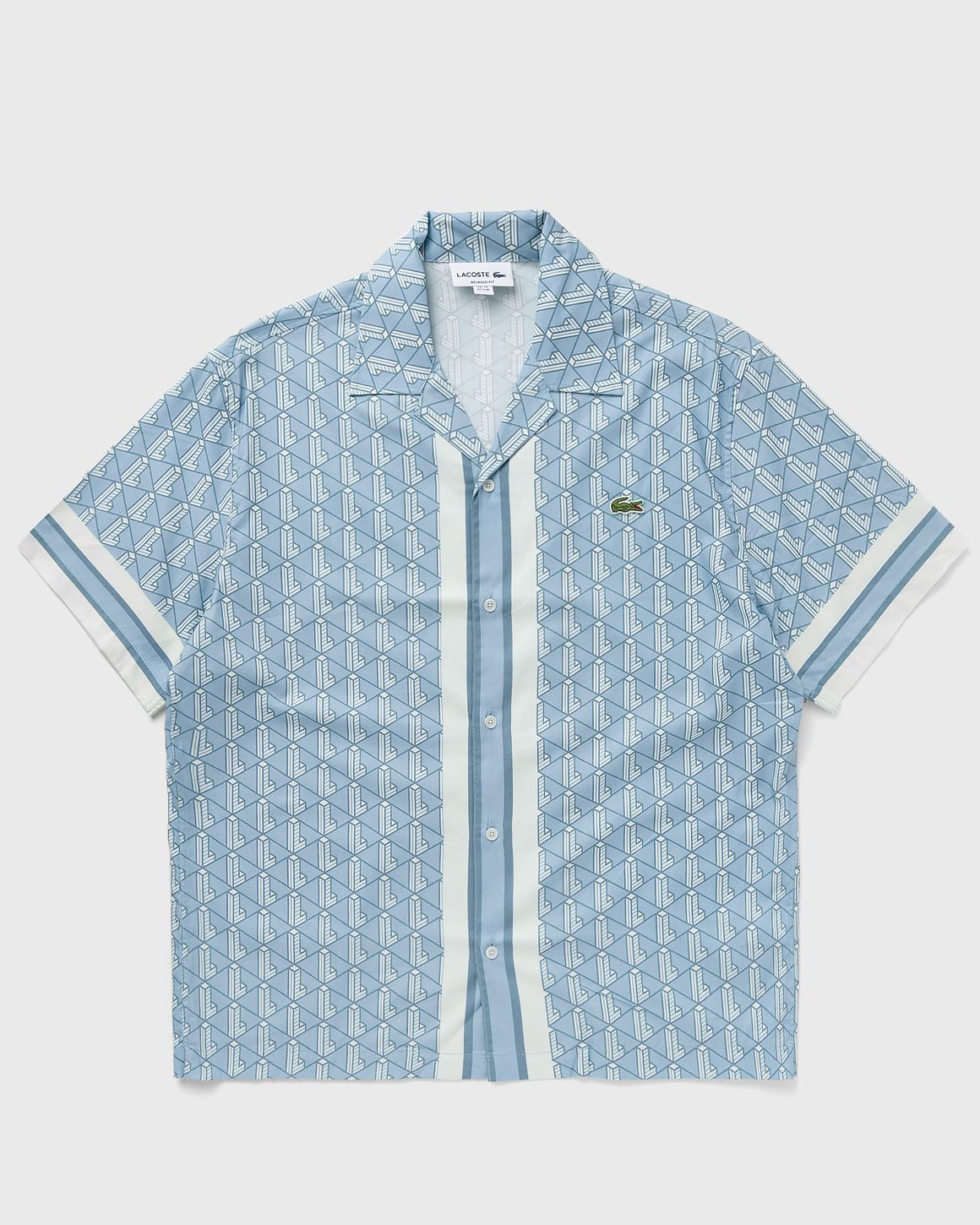 This short-sleeved shirt with signature details from Lacoste is made from twill cotton blend fabric for a lightweight and comfortable feel. A unique all-over monogram print, contrast stripes and an embroidered crocodile create a casual look. - Viscose and twill in organic cotton blend - All-over monogram print - Contrast stripes on the front and sleeves - Sewn-on embroidered crocodile on the chest Article Number: CH9094-GIL Gender: Men Color: OVERVIEW/LIMESTONE-CRYSTAL Material: 53% Cotton, 47% Viscose
