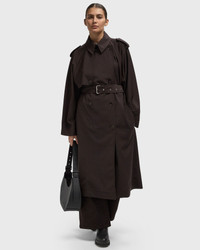 The Lacoste Oversized Wool Blend Trench Coat is a timeless coat made from a high-quality wool blend that combines modern chic with classic trench design thanks to its generous, oversized cut. The brown color emphasizes the elegant, muted look, while the material provides warmth and a structured effect. - Wool from animal-friendly farms - Oversized fit, wide cut, dropped shoulders - Adjustable waist with belt - Two side pockets - Tone-on-tone crocodile embroidery on the chest Article number: BF9787-3LA Gender: women Color: BUFFALO Material: 53% Polyester, 4% Spandex/elastane, 43% Wool