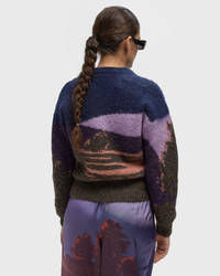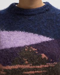This sweater is a masterpiece of creativity and knitting technique. The jacquard is made from warm, fluffy sheep and alpaca wool and features a landscape motif inspired by Rene Lacoste's beloved Chantaco in the French Basque Country. The elegant design is rounded off by the embroidered signature crocodile, which gives the model a bold, sophisticated touch. - Jacquard knit made from alpaca wool and wool from animal-friendly sources, as well as recycled polyamide - Classic fit, comfortable sleeves - Wide 3-stitch knit - All-over landscape motif - Color-coordinated embroidered crocodile at hip height Article number: AF4157-ADI Gender: women Color: GLOBE/PORT 0-NEVA PURPLE- Material: 19% Alpaca, 44% Polyamide, 37% Wool