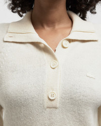 This elegant sweater combines 90 years of Lacoste knitting expertise. Made from heavy, fluffy wool fabric that has been seamlessly processed using state-of-the-art 3D knitting technology, it fits perfectly to the body. The high collar with buttons and subtle roll knit details give it a feminine look. A classic that will see you through all seasons. - Seamlessly knitted jersey wool from animal-friendly sources - Classic fit, comfortable sleeves - Wide 7-gauge knit - High collar with buttons - Roll knit at the neck and cuffs - Color-coordinated embroidered crocodile on the chest Article number: AF4010-XFJ Gender: women Color: LAPLAND Material: 100% Wool
