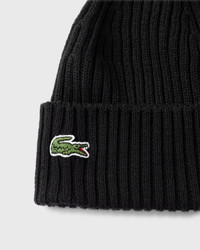 This Lacoste beanie made from 100% worsted wool is a must-have for winter. With a ribbed knit pattern, it is a cold weather essential that is warm, soft and timeless. - Wool from animal-friendly cultivation - Turn-up - Embroidered green crocodile on the side Article Number: RB0001-031 Gender: Men Color: black Material: Full: 100% Wool