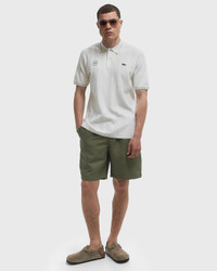 These Bermuda shorts are a modern take on a Lacoste sportswear essential. They are made from lightweight, breathable linen with practical details, including an adjustable elastic waistband. - Made from lightweight, breathable linen blend - Regular fit, straight cut - Adjustable elastic waistband with integrated drawstring - Color-coordinated Corozo button - Embroidered crocodile on the left back pocket Article Number: GH9121-BMY Gender: Men Color: KHAKI Material: 100% Cotton