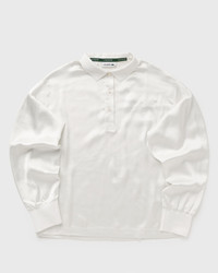 The Lacoste satin polo shirt is a feminine reinterpretation of the iconic classic—elegant, flowing, and modern. Made from recycled polyester satin, it impresses with its luxurious look, oversized fit, and dropped shoulders. Refined highlights such as Rene Lacoste's embroidered signature, ribbed knit details, and the characteristic crocodile on the chest make this piece a stylish essential. - Recycled polyester satin limits the use of new raw materials - Oversized fit, dropped shoulders - Rene Lacoste's signature embroidered on the chest - Ribbed knit collar and cuffs - Embroidered crocodile on the chest Article number: CF5442-70V Gender: women Color: Flour Material: 100% Polyester