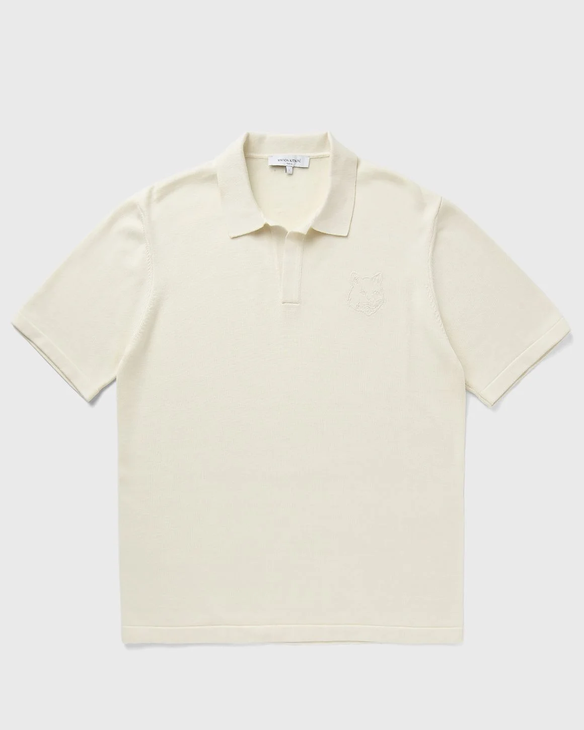The BOLD FOX HEAD EMBROIDERED KNITTED POLO by Maison Kitsune combines casual style with comfortable comfort. The short-sleeved knitted polo shirt has a comfortable cut and features a Bold Fox Head embroidery. - Polo shirt made from smooth knit - Comfortable cut - Polo collar - Single-colored Bold Fox Head embroidery on the chest - Short sleeves - Ribbed collar, cuffs and hem Article Number: OM00205KT1135-0145 Gender: Men Color: RICH VANILLA Material: 100% Cotton