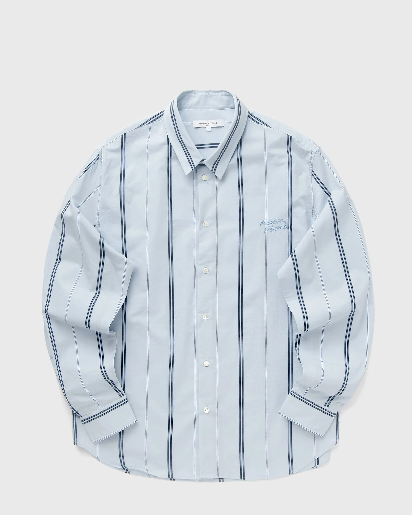 The RELAXED SHIRT by Maison Kitsune is made from Heritage Stripe cotton. The shirt has a relaxed cut and features embroidered Maison Kitsune lettering. - Shirt made from Heritage Stripe cotton - Loose fit - Shirt collar - Engraved button fastening - Embroidery on the chest - Long sleeves with straight button cuffs - Rounded hemline Article number: MM00403WC5029-0072 Gender: men Color: CIRRUS BLUE Material: 85% Cotton, 15% Polyamide
