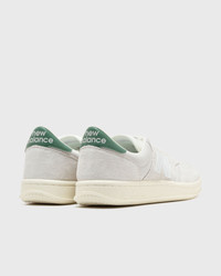 Straight from the rich archives of the Boston powerhouse, the New Balance T500 celebrates its much-deserved comeback: Initially launched in 1982 as a tennis performance shoe, the silhouette boasts a smooth suede upper in a fitting vintage shade, making for a perfectly versatile pair. - Outsole with herringbone pattern and pivot circle - Woven tongue label - Perforated toe area - Polyurethane midsole - Cushioned polyurethane footbed Article Number: CT500GRN Gender: Men, Women Color: REFLECTION Material: 30% Rubber, 70% Leather