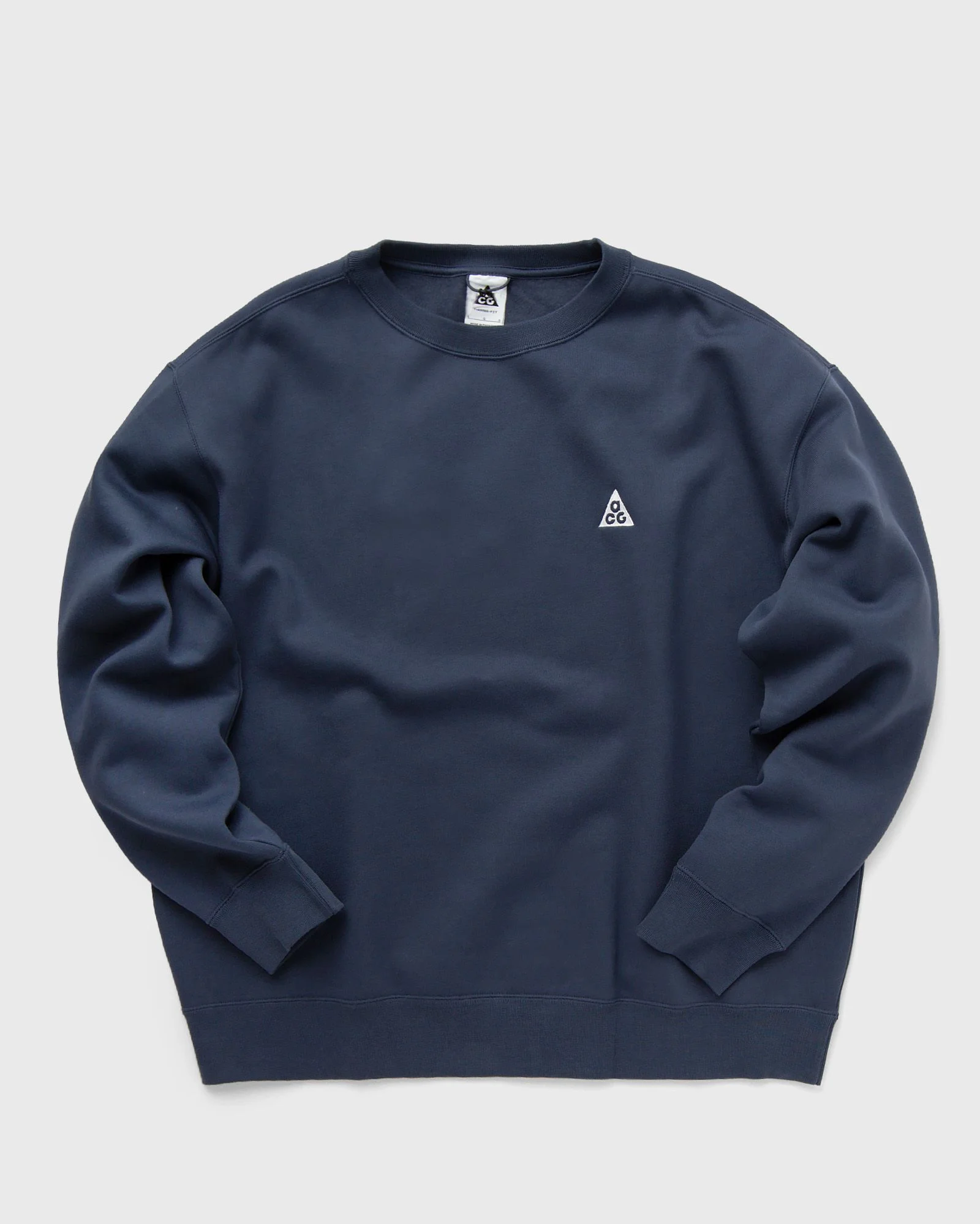 The roomy, extra-warm Nike ACG Therma-FIT Fleece Crew Sweatshirt keeps you warm and comfortable in cold conditions. It's ideal for layering and the close-fitting, ribbed openings lock in warmth. Nike Therma-FIT technology uses natural body heat to keep you warm in cold weather. - Drop shoulders - Elastic, ribbed cuffs, collar and hem - Embroidered logos Article Number: DX9611-437 Gender: Men Color: THUNDER BLUE/SUMMIT WHITE Material: 75% Cotton, 25% Polyester