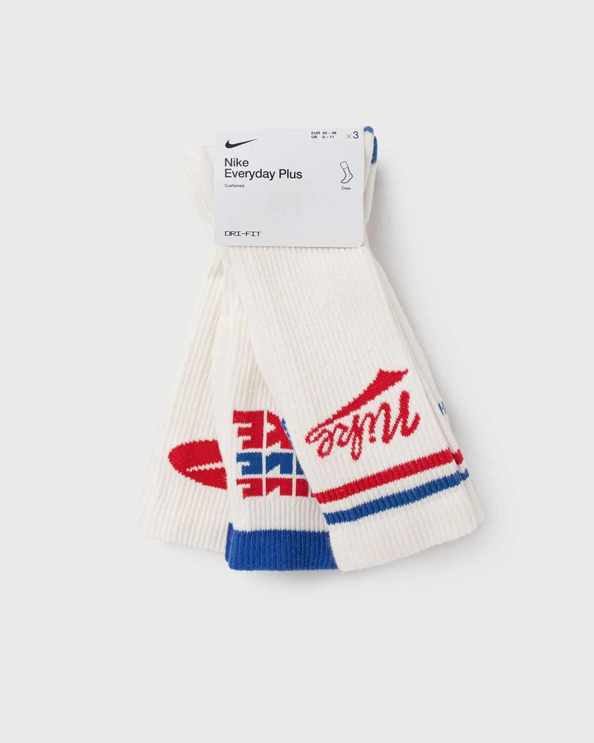 The sweat-wicking technology of the Nike Everyday Plus Socks keeps your feet dry and comfortable, while a band around the arch provides a snug and supportive fit. - Nike Dri-FIT technology wicks sweat away from the skin, allowing it to evaporate faster for dry comfort - Reinforced toe area provides durability Article Number: HJ9336-901 Gender: Men, Women Color: MULTI-COLOR Material: 66% Cotton, 31% Polyester, 3% Spandex/elastane