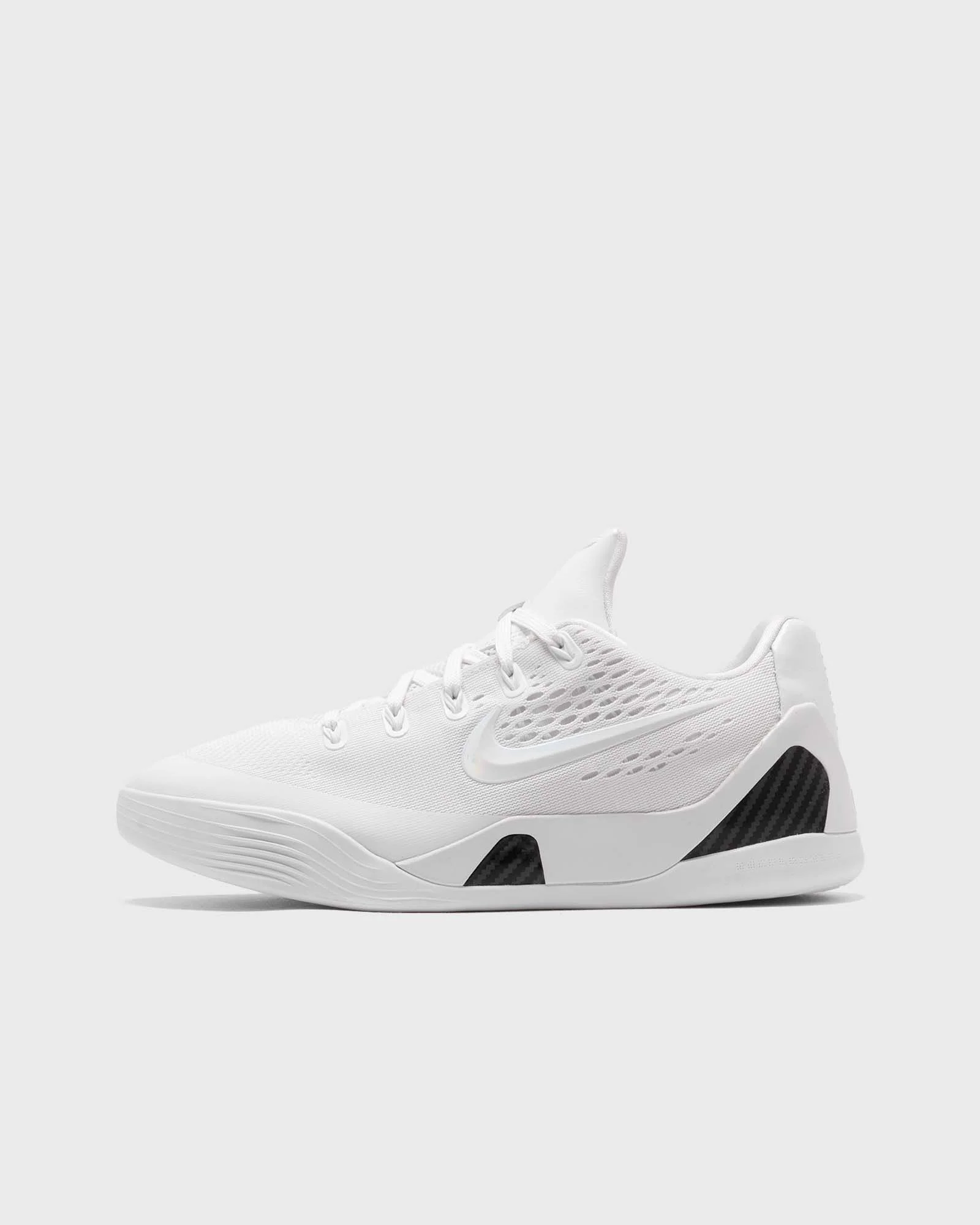 Kobe's return to the court after tearing a tendon in his lower leg has inspired generations of players to keep fighting. The Nike Kobe 9 updates the shoe that helped the Black Mamba make his comeback. A lightweight knit upper and springy cushioning help you perform. - Lightweight knit upper is flexible and offers breathable comfort and support - Molded plastic on the heel provides stability and structure as you move from side to side - Rubber sole for durable traction Article number: FV3607-100 Gender: men,women Color: WHITE/WHITE-WHITE Material: 100% Synthetic/Textile
