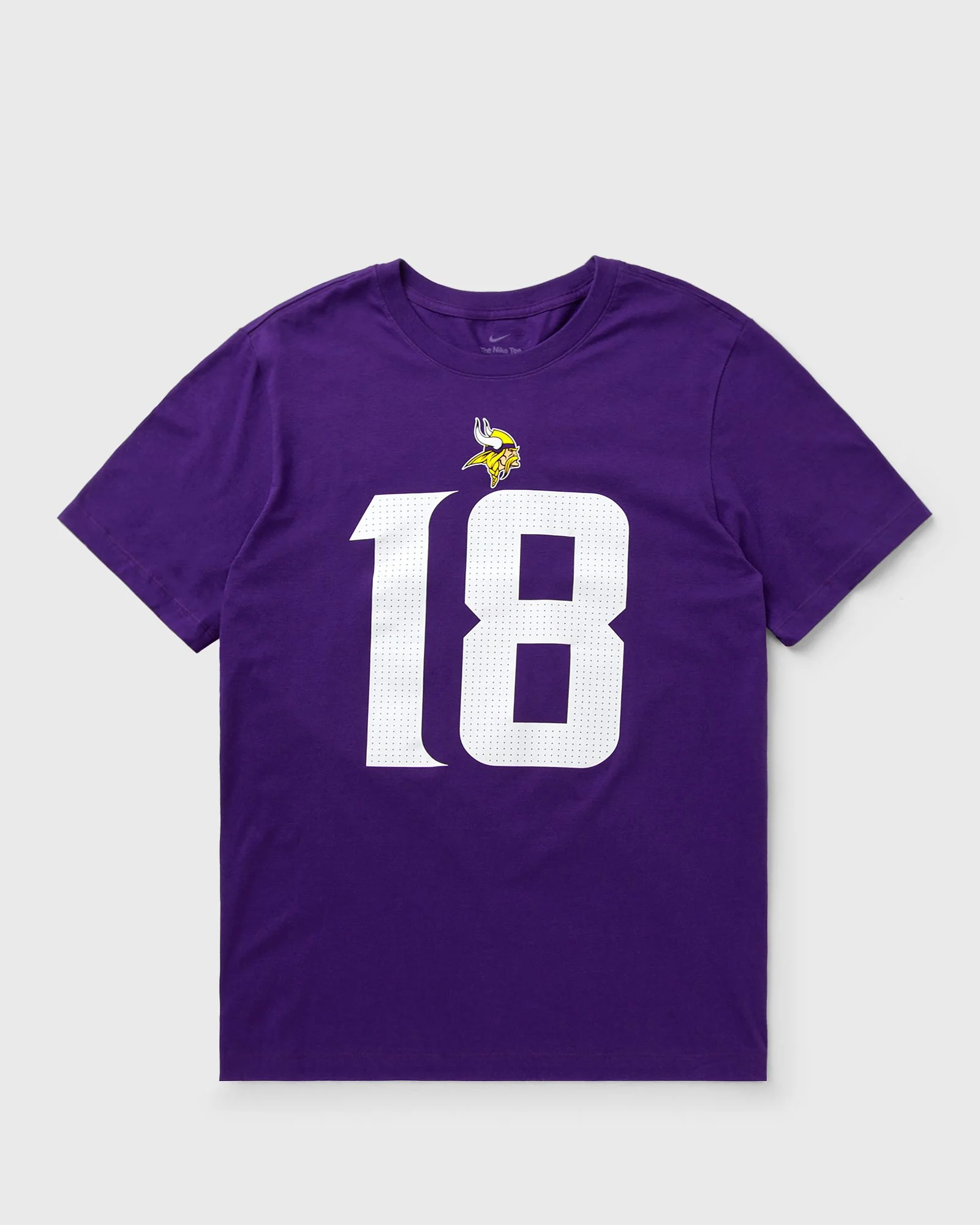 The product Nike - NFL Minnesota Vikings Name and Number T-Shirt Justin Jefferson 18 in the color COURT PURPLE is available at BSTN. Article number: N199-51L-9MF-014 Gender: men Color: COURT PURPLE Material: 100% Cotton