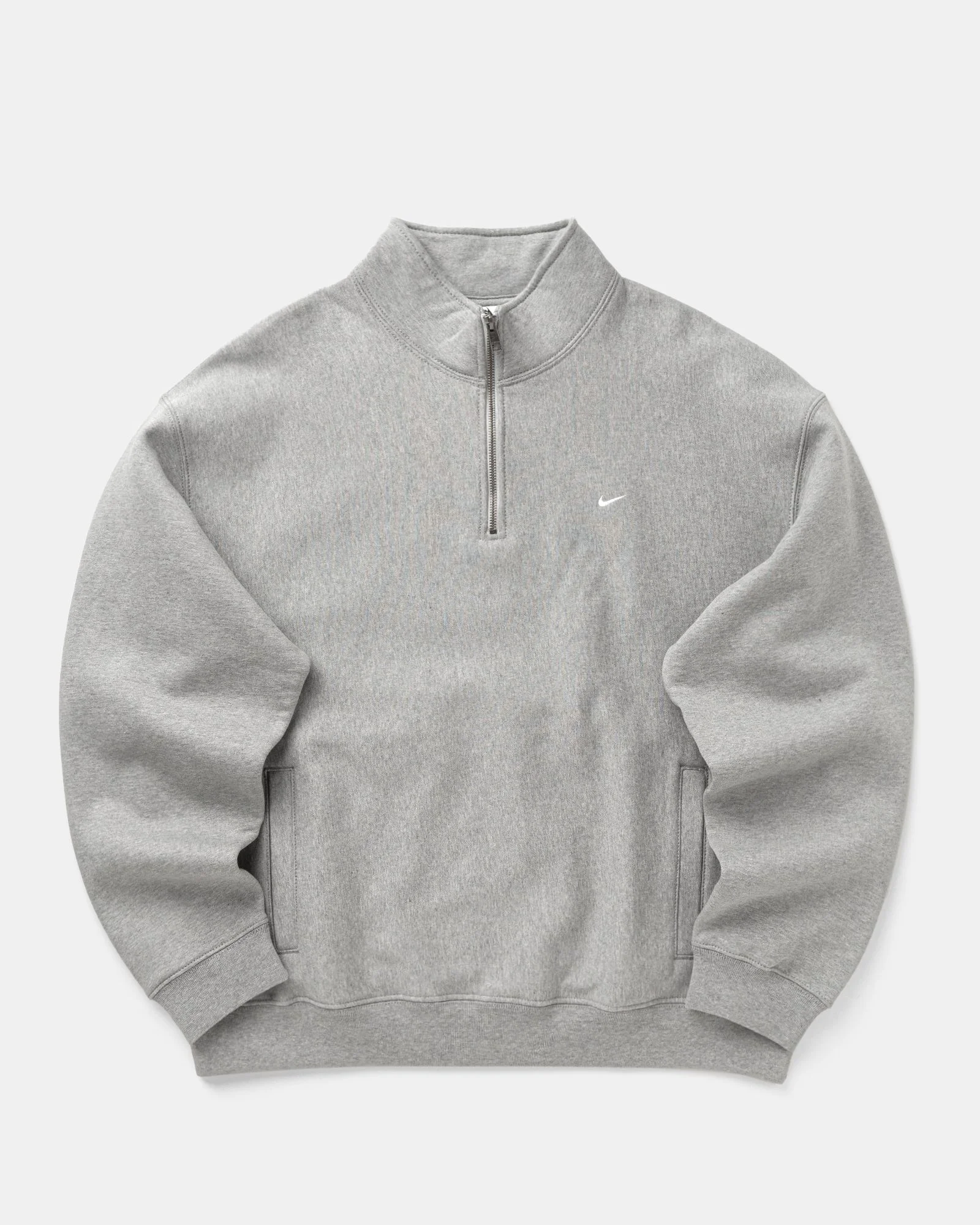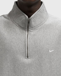 This warm, textured Nike sweatshirt is made from heavyweight brushed fleece that is soft on the inside and smooth on the outside. The loose, relaxed fit ensures freedom of movement and a relaxed drape. The quarter zip and stand-up collar complete the minimalist look, while the small embroidered Swoosh logo provides subtle branding. - Embroidered logo - Ribbed hem and cuffs - Metal zipper Article number: HV1094-063 Gender: men Color: DK GREY HEATHER/WHITE Material: 84% Cotton, 16% Polyester