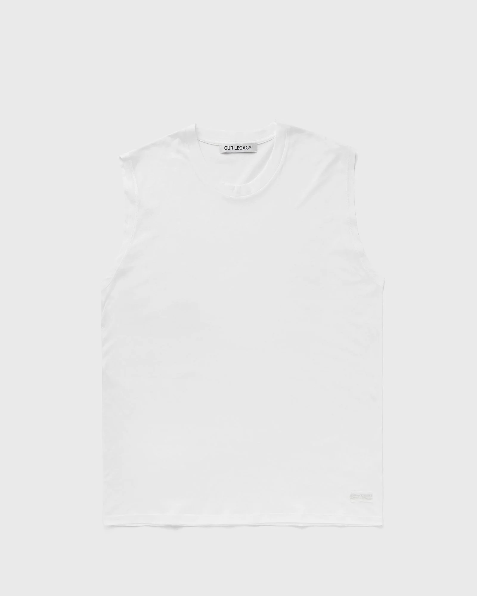 The Our Legacy Breathe Tank is made from lightweight Italian fine jersey and has a relaxed fit. It features a ribbed crew neck and reversed Our Legacy logo patch. - Italian fabric - Lightweight fine jersey - Ribbed crew neck - Sleeveless - Reversed Our Legacy logo patch Article number: M2256BWH Gender: men Color: WHITE PARA COTTON Material: 100% Cotton