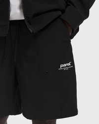 The Saana shorts from Parel combine style and functionality. They are made from a flexible fabric in a timeless silhouette and feature three zipped pockets and an elastic waistband with drawstring for adjustable comfort. A screen print on the left leg completes the design. - Flexible fabric - Three zipped pockets - Elastic waistband - Tonal eyelets - Screen print logo Article Number: PAREL_102_BLK Gender: Men Color: BLACK Material: 85% Nylon, 15% Spandex/elastane