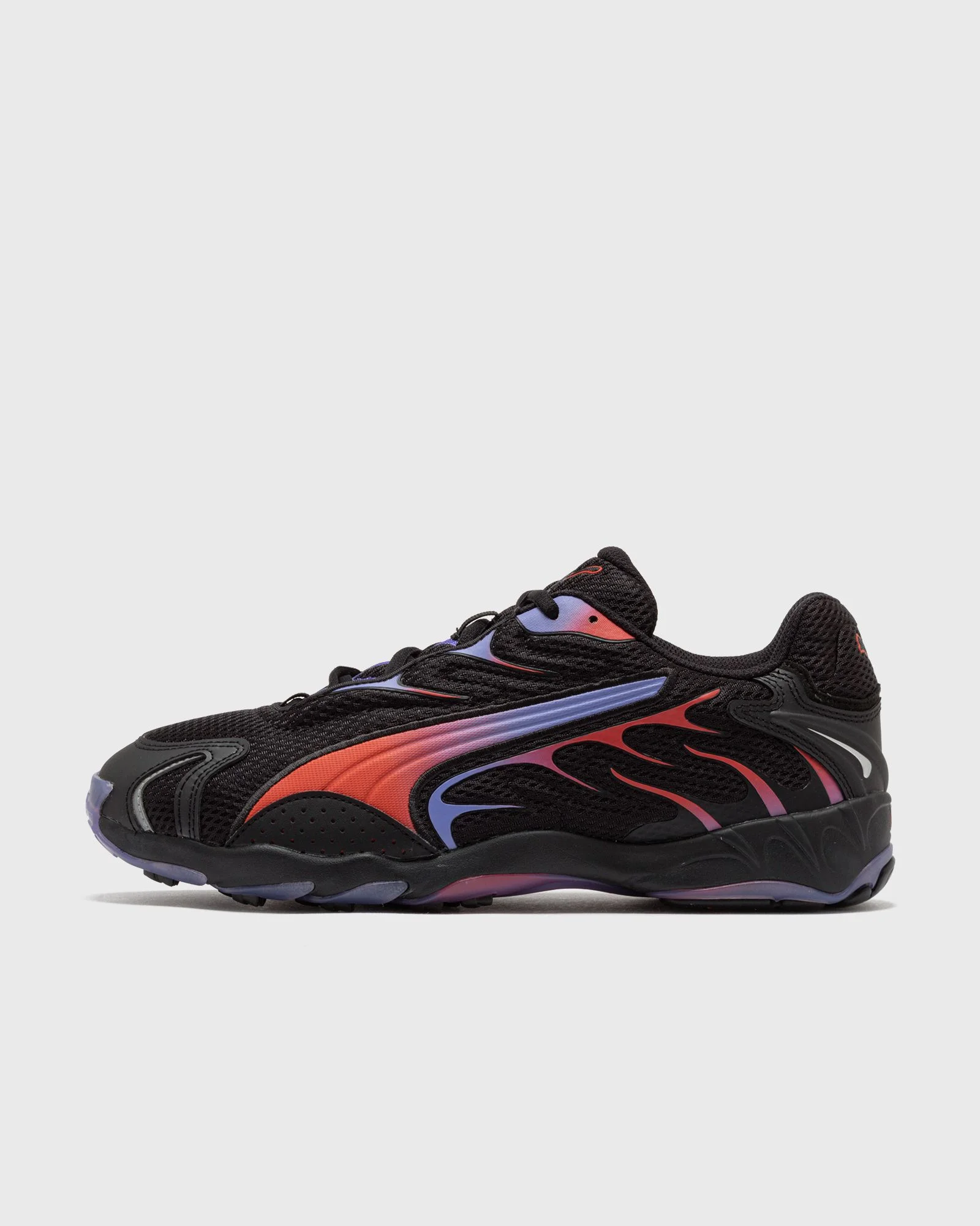 Revive your look with these retro-inspired kicks from the 2000s. The Puma Inhale comes with a textile upper, synthetic overlays and an eye-catching outsole with color gradient. - Textile upper - PU overlays on vamp and heel with reflective PU underlay - Textile insole - Puma branding details Article Number: 401560-02 Gender: Men Color: PUMA BLACK-PUMA RED Material: Upper material: 100% Synthetic/Textile