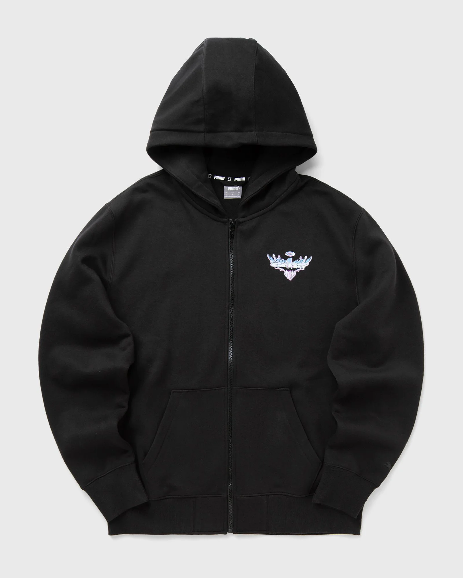 A relaxed fit and Melo graphics make the Puma x Melo Iridescent Hornets hoodie the perfect essential for casual looks. A soft cotton blend ensures a comfortable fit. - Full-length zipper - Kangaroo pocket - Ribbed hem and cuffs - Graphic prints on the front and back Article Number: 627796-01 Gender: Men Color: Puma Black Material: 80% Cotton, 20% Polyester