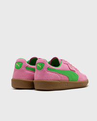 The Puma Palermo made its debut in the soccer stadiums of the 80s, where it was an integral part of the Terrace Culture. Today it is an icon of the soccer world and returns as streetwear. - Leather upper - T-toe construction - Rubber outsole - Palermo branding on upper Article number: 397549-01 Gender: men,women Color: PINK DELIGHT-PUMA GREEN-GUM Material: 30% Rubber, 70% Leather