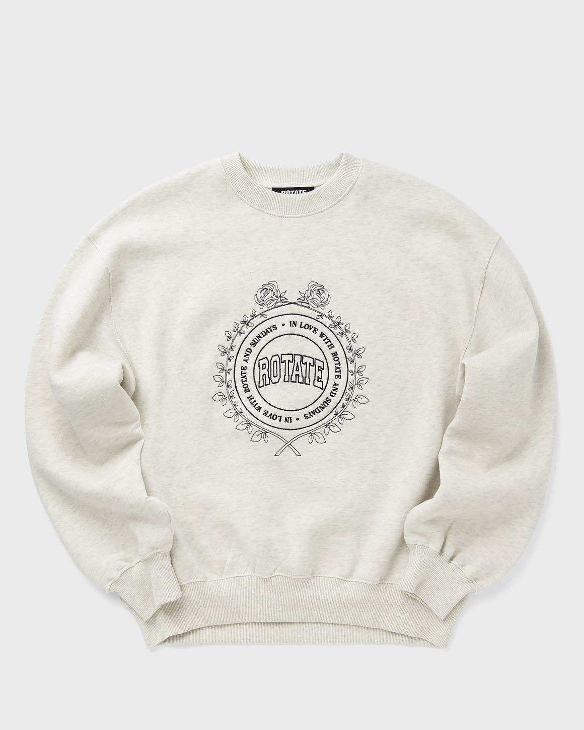 The Heavy Sweat Crewneck by ROTATE Birger Christensen combines urban minimalism with a touch of retro flair. The oversized cut with dropped shoulders creates a casual look, while the classic round neckline and ribbed cuffs and hem ensure a perfect fit. The eye-catching ROTATE logo with floral graphic on the front adds a modern accent. - Relaxed fit - Ribbed cuffs and hem - Round neckline This item is partly made of certified, recycled and sustainable materials, reducing the global amount of waste and conserving primary raw materials. Discover a wide range of sustainable items now at BSTN! Article Number: 1143813070 Gender: Women Color: WHITE MELANGE Material: 100% Cotton