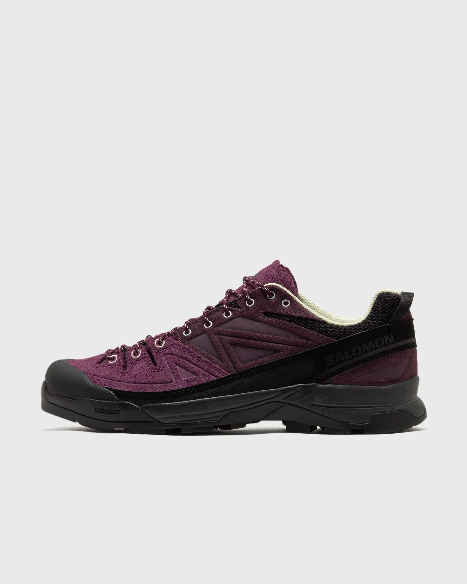 The Salomon X-Alp LTR is making a comeback, combining technical mountaineering DNA with modern street style. Inspired by approach shoes, it combines protective details, functional features, and high-quality materials. - edgingCHASSIS - Milled OrthoLite insole - Textile lining - Suede leather - All Terrain contaGRIP - Protective toe cap - Mud guard Article number: L47988900 Gender: men,women Color: WINTEB/PLUM/LIME C Material: 100% Leather/Synthetic