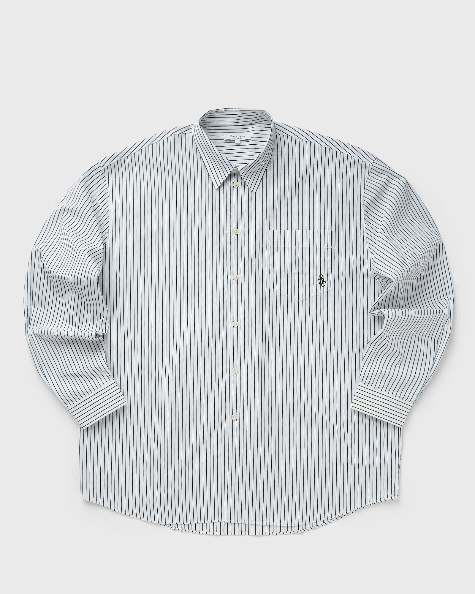 The SRC Oversized Shirt by Sporty & Rich is a classic shirt made from cotton poplin with a relaxed cut and a small logo embroidery on the breast pocket. Shirts from Sporty & Rich are made in Portugal by one of the best and oldest European shirt manufacturers. - Button placket - Mother-of-pearl buttons - Buttoned cuffs - Chest pocket with logo embroidery Article number: SI006606302ST71 Gender: men,women Color: FOREST STRIPED Material: 100% Cotton