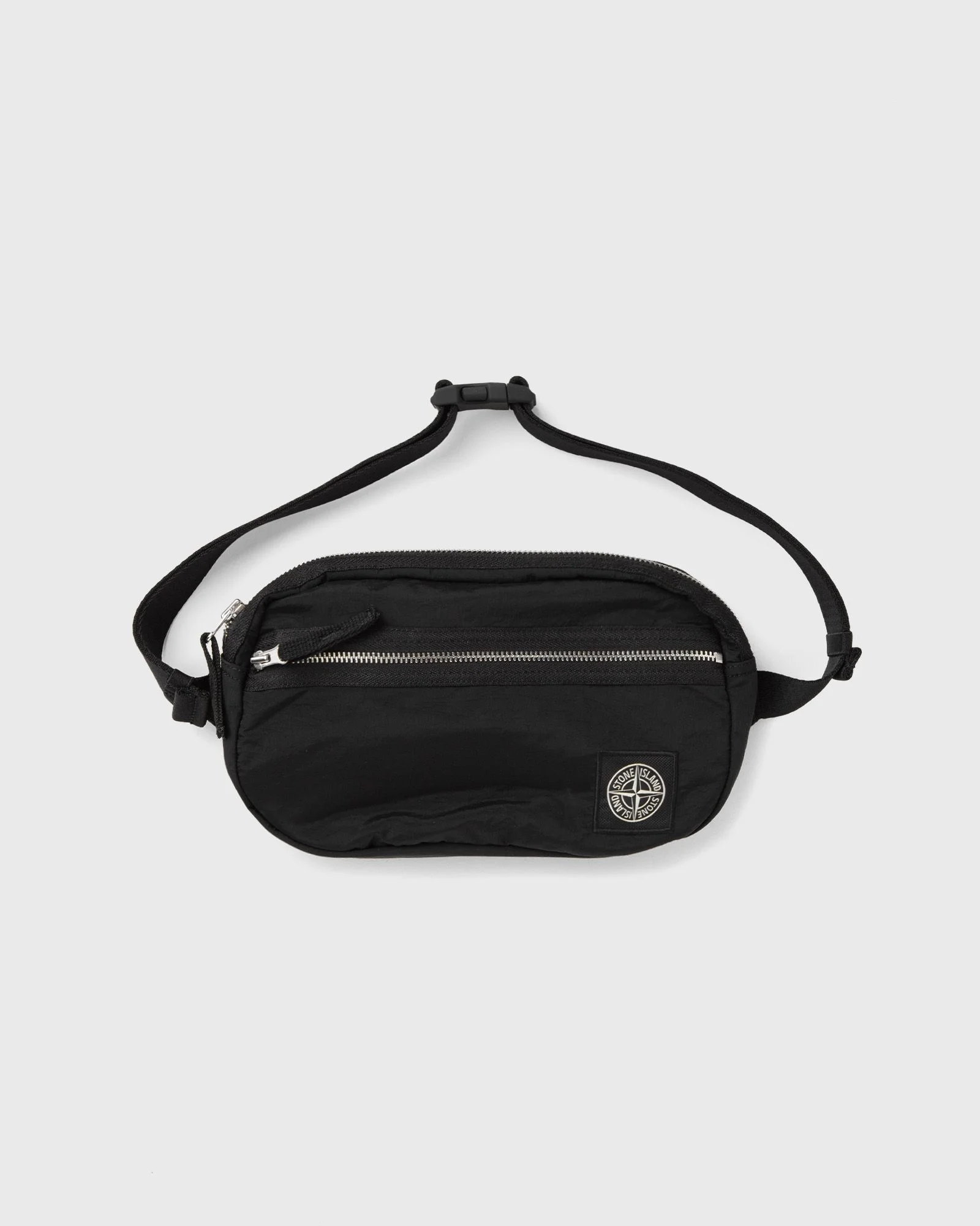 The Stone Island belt bag is made from nylon metal using regenerated ECONYL yarns with a polyurethane coating. It features a practical zipped compartment, nylon ripstop lining and Compass logo patch. - Front pocket with horizontal zipper with Stone Island Compass logo patch - Nylon ripstop lining - Top zipper closure - Adjustable nylon webbing belt with buckle closure Article number: K2S159200016S0251.V0029 Gender: men Color: black Material: 100% Polyamide