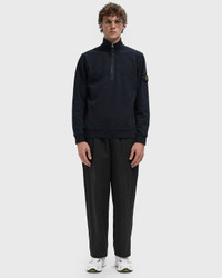 The Stone Island half-zip sweatshirt is made from brushed organic cotton fleece with ribbed triangular inserts, side bands and a concealed zip under the cotton placket. - Piece-dyed - Ribbed stand-up collar with zipper - Ribbed triangular insert on shoulders and side bands - Stone Island badge on left sleeve - Elasticated ribbed cuffs and bottom hem - Zip hidden under the cotton placket - Regular fit Article Number: K2S156100068S0A20.V0020 Gender: Men Color: Navy Blue Material: 100% Cotton