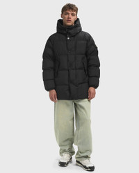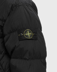 The Stone Island hooded down parka is made from lightweight, recycled nylon rep with an ultra-dense woven construction. The resin coating on the inside makes it windproof and slightly waterproof. Due to the resin treatment of the material, the color penetrates unevenly and gives the surface a crinkled appearance. The piece has been padded with the finest feathers, which have been specially treated to withstand the piece dyeing process. Certified according to RDS - Responsible Down Standard. - Padded hood with fixed drawstring - Slanted side pockets with zipper under fixed flap - One inside pocket with button and Compass logo embroidery - Stone Island badge on left sleeve - Elasticated cuffs - Drawstring hem - Two-way zipper under placket with snap button Article Number: K2S154100012S0A23.V0029 Gender: Men Color: black Material: 100% Polyamide