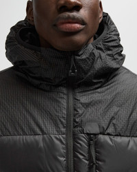The North Face Kalix Down Jacket with Hood combines urban style with outdoor performance. Its angular puffer design gives it a modern look, while the 700 fill power down insulation provides reliable warmth even in cold temperatures. Made from wind-resistant Pertex Quantum, it stores heat efficiently, and Spectra ripstop yarns reinforce the abrasion zones for maximum durability. The integrated, stowable storm hood protects against biting winds, so you're equally well equipped on the trail and in the city. - Spectra Ripstop at key abrasion points - PFC-free DWR coating for improved water repellency - 600 fill power recycled waterfowl down - Four-and-a-half-inch chambers - Attached, adjustable, elastic-bound, three-piece hood with drawstring and cord lock at the back - Attached and small packable one-piece balaclava/mask - Two-way zipper at the center front - Secure zippered chest pockets - Interior pocket for small items - Interior elastic drawcord with exposed stopper at hem for adjustment - Interior knit cuffs with thumb holes - Reflective details - Thermal print logo on upper sleeve and rear right shoulder Article number: NF0A8D1YJK31 Gender: men Color: tnf black Material: 100% Nylon