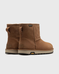 The UGG Classic Mini GTX is your weatherproof all-rounder – come rain, snow, or shine. Thanks to waterproof suede and an integrated GORE-TEX membrane, it can withstand any weather, while the cozy UGGplush lining keeps you warm even at -20°C. The lightweight EVA midsole made from sugar cane and the sturdy Vibram outsole offer optimal grip and comfort. A classic – redesigned for every climate. - Waterproof - Waterproof suede leather - Inner shoe with GORE-TEX membrane - Pull loop at the back - 17 mm thick UGGplush lining (60% upcycled wool, 40% TENCEL Lyocell, backing made from 100% recycled polyester) - 17 mm thick UGGplush insole (60% upcycled wool, 40% TENCEL Lyocell) - Sugarcane EVA midsole - Vibram outsole - For temperatures down to –20° C - Rubber heel patch with UGG logo, GORE-TEX woven label Article number: 1171150-CHE Gender: men Color: CHESTNUT Material: 20% Rubber, 80% Leather