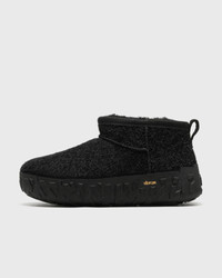 The Classic Ultra Mini Wrap Tech takes a modern UGG classic to a whole new level. With a short shaft and signature twin seam detailing, it combines textured suede with a rugged, rough Vibram outsole. Inside, the curly UGGplush lining and insole pamper your feet, while the lightweight sugarcane EVA midsole provides perfect support all day long. - Suede upper - 10 mm thick curled UGGplush lining (60% upcycled wool, 40% TENCEL Lyocell) - 10 mm thick curled UGGplush insole (60% upcycled wool, 40% TENCEL Lyocell) - Molded PU footbed with at least 50% bio-based material - Sugarcane EVA midsole - Vibram outsole - Leather heel label with embossed UGG logo Article number: 1171115-BLK Gender: men,women Color: BLACK Material: 30% Rubber, 70% Leather