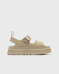The UGG GoldenGlow Embossed Sandal is as unique as you are. With distinctive crocodile embossing, each shoe is one of a kind. An ultra-lightweight sugarcane EVA sole meets soft straps and a lining made from 100% recycled fibers—for style and comfort you can feel all day long. - Embossed TPU upper - Pull tab at the back made from 100% recycled polyester fibers - Velcro fastening, straps made from 100% recycled polyester fibers - Textile lining made from 100% recycled polyester fibers - Sugarcane EVA midsole - Sugarcane EVA outsole Article number: 1175311-MDSD Gender: women Color: MUSTARD SEED Material: 100% Synthetic/Textile