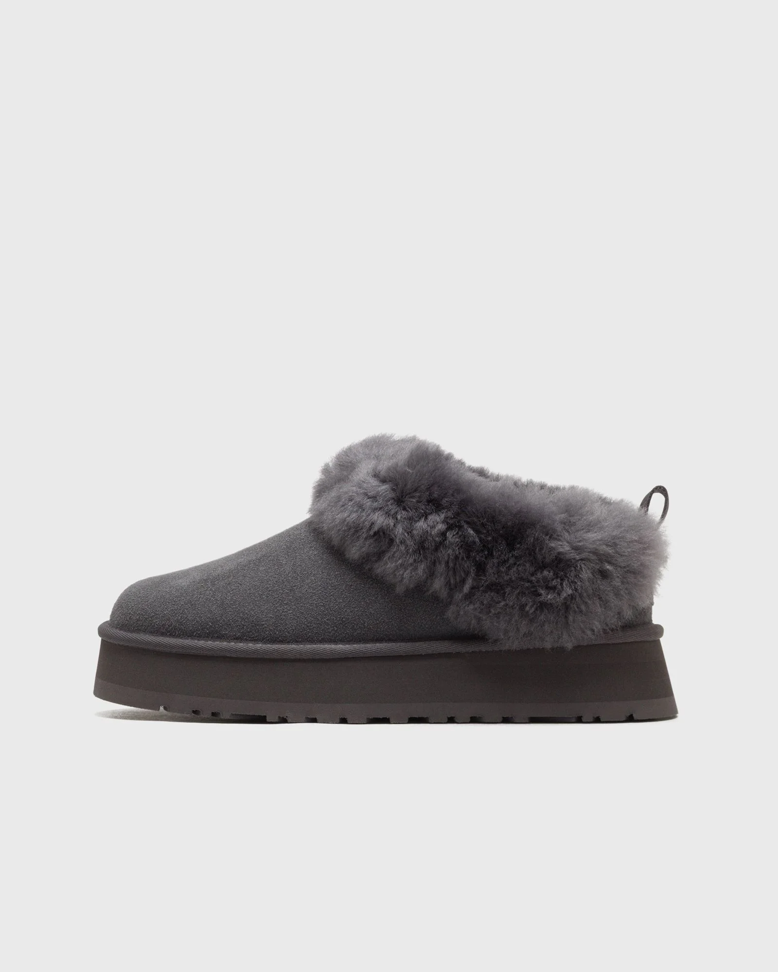 Do you love the Tazz and want even more UGG comfort? Then the Tazzelle is the shoe for you. This indoor and outdoor slipper features extra plush, genuine suede, and a feather-light 4.5 cm platform sole made from cushioning sugarcane EVA. Inside, cozy lambskin lining, which is also visible on the fixed cuff, ensures comfort—so you can wear them with or without socks. - Suede upper - Lambskin collar - 10 mm thick lambskin lining - 10 mm thick lambskin insole - EVA midsole - EVA outsole made from sugarcane - Textile binding made from 100% recycled polyester fibers - 4.5 cm platform height - Suede heel label with embossed UGG logo Article number: 1171393-OBS Gender: women Color: OBSIDIAN Material: 62% Leather, 38% Other