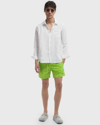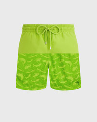 The Moorea swim shorts by Vilebrequin feature an elastic waistband with four seams and a drawstring that ensures that it fits perfectly and guarantees optimum comfort. The swim shorts come with a hidden twist: once you hit the water, a subtle shark print reveals itself. The supple twill gives a particularly soft feel and is also fast drying thanks to special treatment. - Elastic waistband with drawstring - Eyelets and pocket on the back to allow water to drain away easily This item is partly made of certified, recycled and sustainable materials, reducing the global amount of waste and conserving primary raw materials. Discover a wide range of sustainable items now at BSTN! Article Number: MOOCD109-426 Gender: Men Color: LIME Material: 100% Polyamide