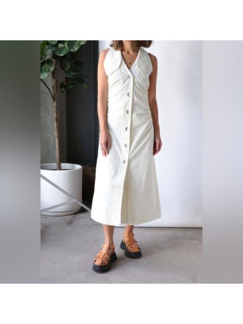 Seersucker Midi Shirt Dress in Flan Stripe