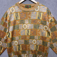 Rare Kenzo Paris Embroidered Logo Total Pattern Sweatshirt Made in Japan Size: XL Ptp 23.5 Length 27.5