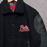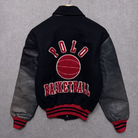 90s POLO RALPH LAUREN Basketball Leather Wool Varsity Jacket
