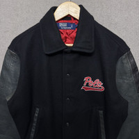 90s POLO RALPH LAUREN Basketball Leather Wool Varsity Jacket Size: S Ptp 22 Length 25