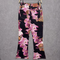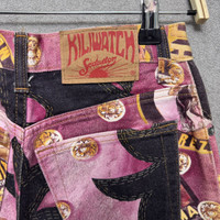 Kiliwatch Secuction All Over Print Flared Bootcut Jeans Made in France Size: 27 Waist 27 Inseam 29 Outseam 39.5 Thigh 11 Front Rise 12 Leg Opening 10 If you have a question or need more pics please feel free to ask, ALL SALES ARE FINAL. NO RETURNS OR COMPLAIN IF YOU HAVE PAID.