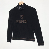 Vintage Fendi Velvet Shirt Spellout Embroidery Fendi Luxury