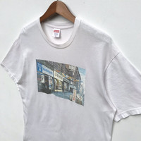 Thanks for favourites our store so that you will able to find us. TAG BRAND : SUPREME SIZE ON TAG : MEDIUM 🔴ORIGINAL IMAGE IS NOT EDITABLE🔴 ACTUAL MEASUREMENT : Arm Pit to Arm Pit - 21.5 INCH Back Collar to Hem - 29 INCH CONDITION - 7.5/10 / Holes‼️ MATERIAL - Look At The Picture‼️ ♦️BUY NOW ‼️BEFORE IT'S SOLD OUT.😭 (A5) 🔴An item that has been used or worn previously. 🔴See our listing for full details and description for any imperfections. 🔴Please dont expect it to be like new or in pristine condition (used clothing). 🔴Don't forget to check our others vintage collection. Delivery / Postage : 🔴DHL EXPRESS / EXPEDITED = 2-5 business day. Payment : 🔴Accept "PAYPAL" only. ATTENTION❗️❗️❗️❗️ 🔴PLEASE PROVIDE YOUR PHONE NUMBER AND EMAIL AFTER PURCHASING THE ITEM. THIS IS IMPORTANT FOR THE SHIPPING PURPOSE. Thank you so much for your visit.