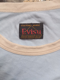 Im international seller so shipping cost is higher than local delivery ππ TQ for your understanding βΊπ Evisu Daicock long sleeve tshirt Japan Designer denim brand Size: Japan L Width 20 inches length 27 inches label : Evisu - item is preowned in great condition, no flaws/defect - material is soft but thick, strectable/elastic/bodyfit - not info material/wash tag, i think it blend material - evisu logo is embroidered - color is sky blue + white - on tag is Japan L = american loose M or slimfit L - i dont found any wash tag on the item Please contact me with any questions. Thank you for visiting my shop