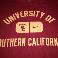 Im international seller 🌍 so shipping cost is higher than local delivery. TQ for your understanding ☺ Nike x USC Go Trojans tshirt university California college sports team P2P 25.5x29.5 inches Tag info is faded..should fit like 2XL Good condition with minor cracks on printing Please contact me with any questions. Thank you for visiting my store