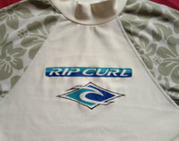 Im not from USA. Im international seller. *I will ship by trackable courier VTG 90s Rip Curl Rash Guard /Wetshirt surfwear vintage size : XL women/girl Pit to pit: 17 inches Length: 26.5 inches label : Ripr Curl - good vintage, normal sign of wear - logo printed on the front with floral design on the sleeves - found some spots at bottom area, its not color..maybe due to its age Please use measurements above to accurate sizing/cutting. Vintage or asian size/cutting may differ compare to modern american cutting. Item is preowned please do not expect a perfect condition. Selling as it is so No claim no return. Any tax pay by receiver. Please contact me with any questions. Thank you for visiting my shop.
