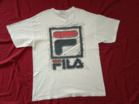 Im international seller so shipping cost is higher than local delivery ππ TQ for your understanding βΊπ VTG 90s Y2K FILA Made in USA Spell Out Big Logo size : L Pit to pit: 22.5 inches Length: 30 inches label : Fila ( made in USA) - preowned in great condition - printed on both front and back - found a small hole (left sleeve) near armpit, repaired wit iron-on cloth Please use measurements above to accurate sizing/cutting. Vintage or asian size/cutting may differ compare to modern american cutting. Please contact me with any questions. Thank you for visiting my shop.