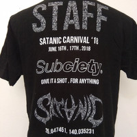 Brand: Subciety x Satanic Carnival Material: 100% cotton Tag size: L (please refer measurement) Measurement: 21 inch (pit to pit) x 26 inch (length) Condition: 9/10. No holes. No stains. This item is used item. Don't expect it to be like new or in perfect condition. Sign of usage. Please refer all pictures. All orders will shipped by DHL. I do accept some reasonable offers. Offer your price. NOTES; ▶️ PLEASE MAKE SURE YOUR ADDRESS IS COMPLETE AND CORRECT! ▶️ Photo may slightly different from actual item in terms of color due to the lighting during photo shooting or the monitor's display. ▶️ All measurement were taken when the garment flat on the floor. ▶️ Do not rely on tag size as pre-worn items may have been altered, stretched or shrunk. Vintage sizes do not directly translate the modern sizes. ▶️ Ship from Malaysia to Worldwide except Israel. Don't forget to check my other items!
